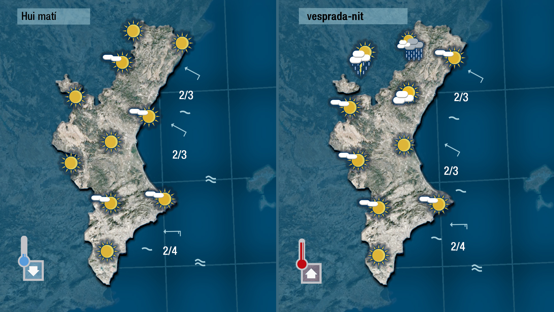 Demà dijous tindrem núvols mitjan i alta al cel de la major part de la Comunitat però només de vesprada podria quallar alguna tronada a Aragó i tocar de refiló el nord de la Comunitat.