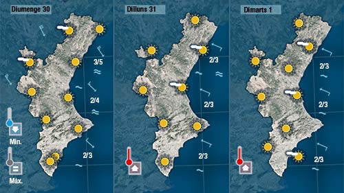 Un nou canvi de vent la matinada de dissabte a diumenge ( en esta ocasió de gregal a mestral) agarnarà el cel de núvols i deixarà les temperaturnes nocturnes prou més baixes.