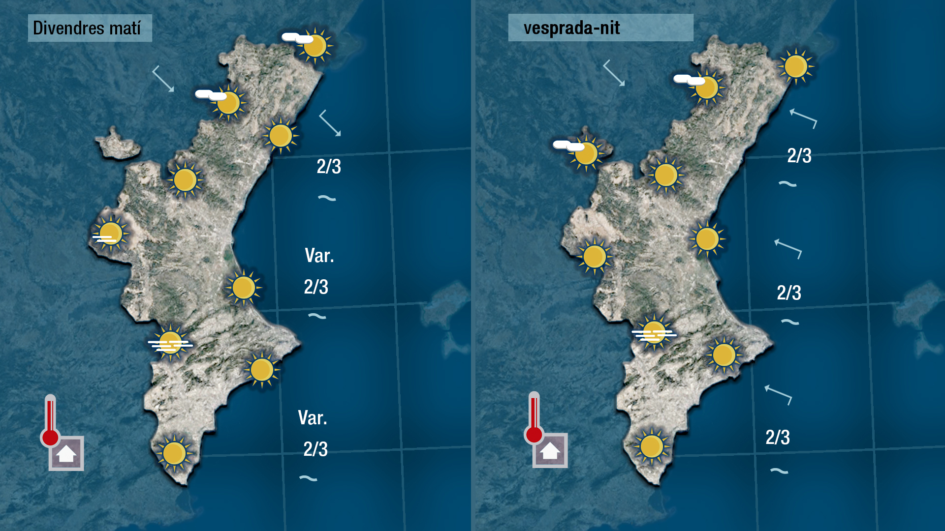 Demà divendres també tindrem temps estable i anticiclònic. Pocs núvols, alunes boires, inversions tèrmiques i temperatures un poc més altes.