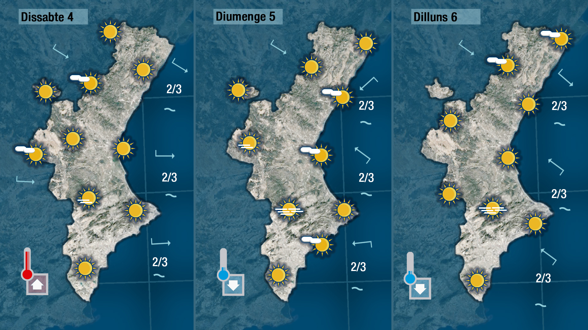 Diumenge refrescarà de nou en canviar la direcció del vent a llevant i xaloc, i tot indica que la setmana vinent les temperatures seran més baixes però tampoc tindrem massa novetats meteorològiques.