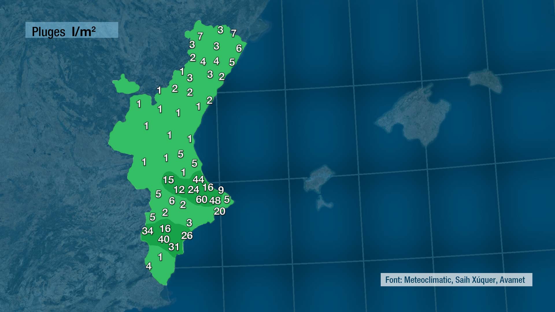 En el resum de pluges d’ahir comprovem com la major part dels registres ‘deixaren molt que desitjar’ i només en punts de La Safor i La Marina trobem algun registre significatiu.