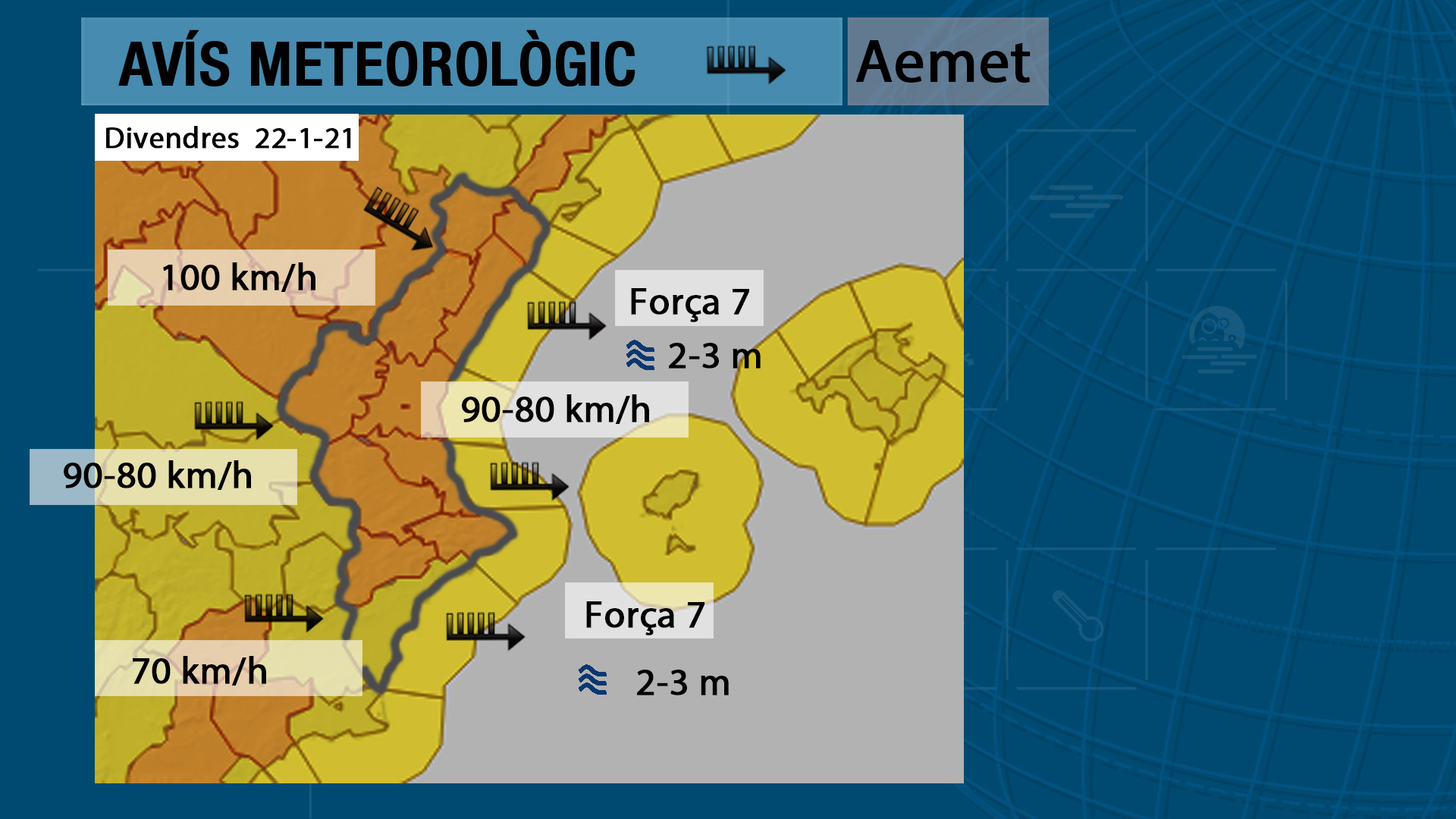 D’entrada comencem el dia amb avís tarinja d’Aemet per fort vent a la major part d ela Comunitat
