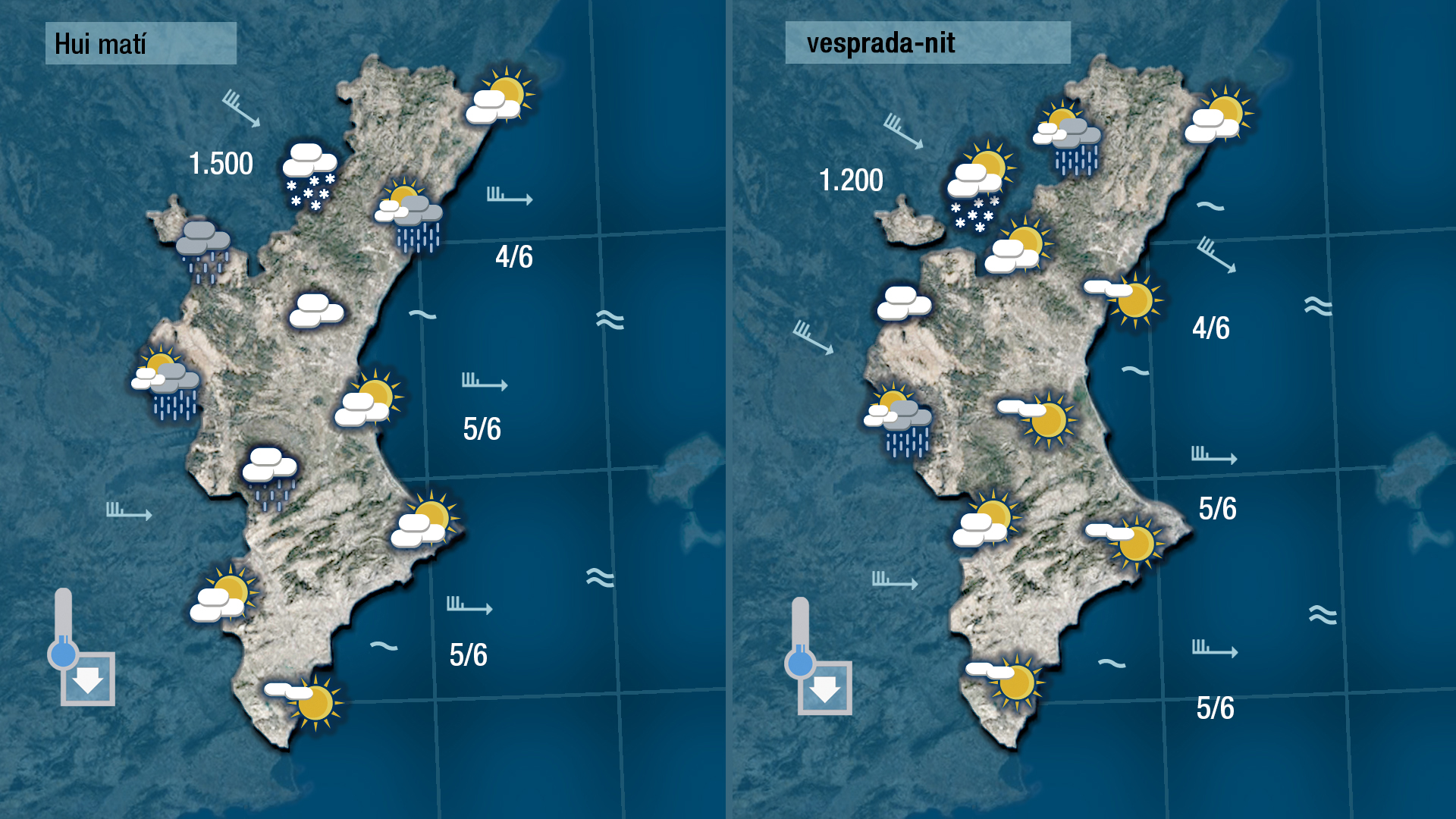 A més, tindrem més núvols al cel i pot ser ruixats dèbils al nord i per l’interior que seran en forma de neu entre els 1.400 i els 1.200 metres (baixarà la cota de neu de cara a la vesprada-nit).