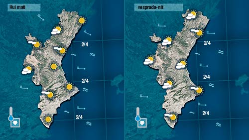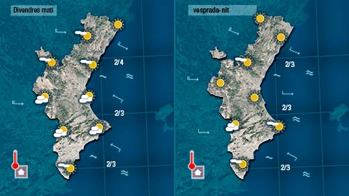 Demà divendres tornaran a pujar tant les mínimes com les màximes. Pot ser al litoral de València i d’Alacant entre la brisa a migdia i talle l’ascens dels termòmetres.
