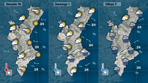 Diumenge donarem la benvinguda al mes de desembre i a l’hivern climatològic pendents dels canvis i que puguen plasmar-se de cara als dos o tres dies següents.