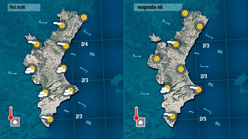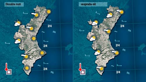 Durant bona part del dia encara es deixarà sentir de ponent i mestral però serà prou més fresc. Les temperatures baixaran 3 o 4 graus respecte els valors de dissabte.