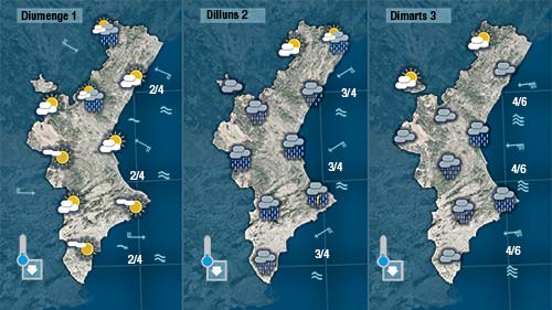 Esperem amb impaciència el que puga passar a partir de dilluns perquè a dia de hui els mapes donen una entrada de vents de gregal (nord-est) i llevant molt pronunciada que a partir de dilluns de vesprada podria portar pluges generals a bona part de la Comunitat .