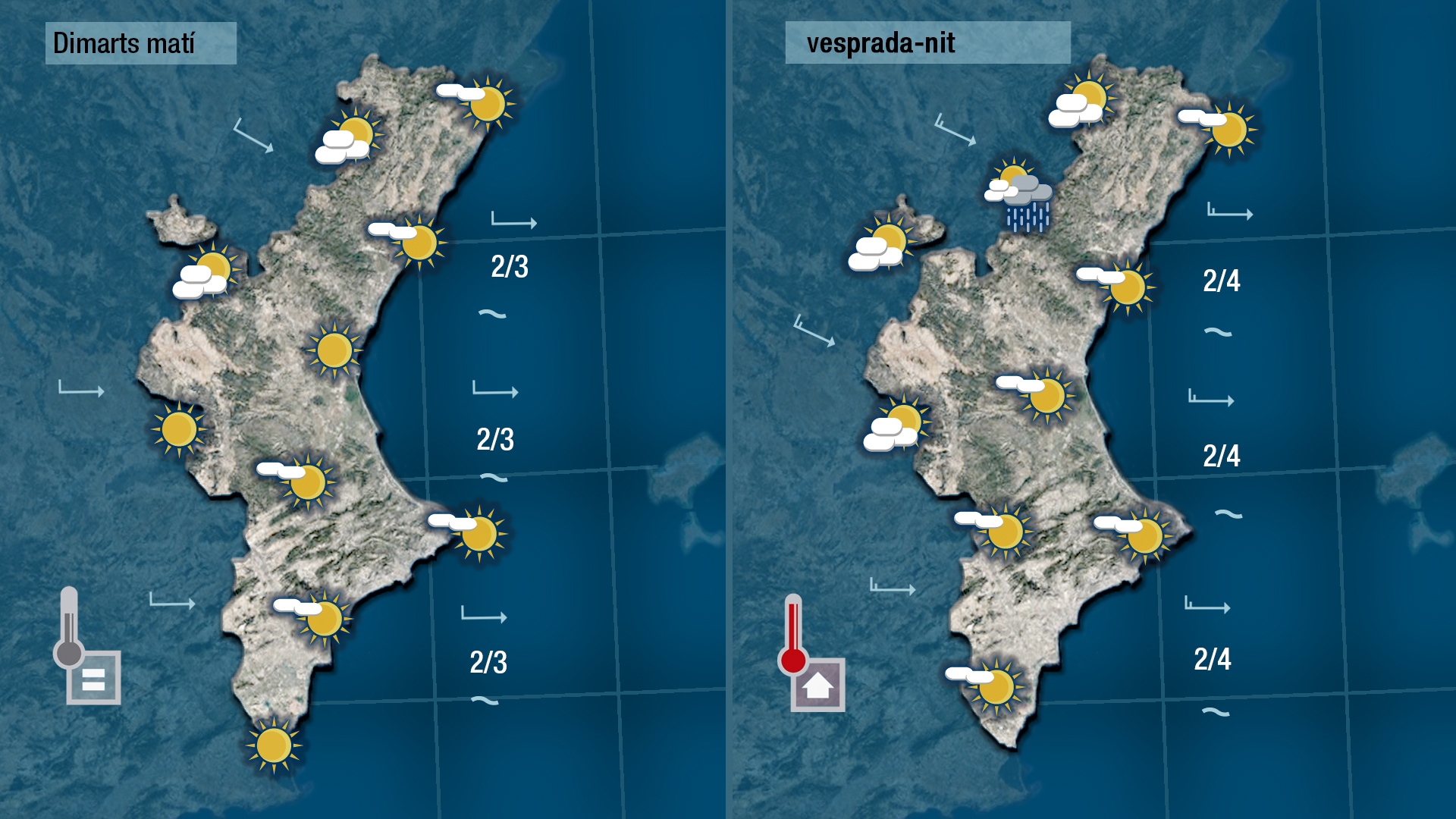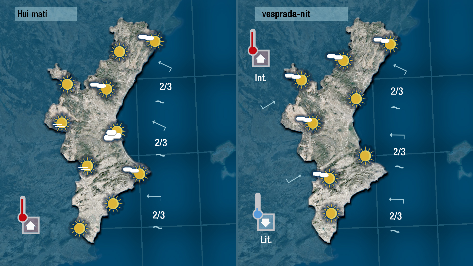 Després d’una nit molt calorosa hui baixaran les temperatures a la costa però notarem com pugen de nou per l’interior on els termòmetres s’aproparan de nou als 40 graus.