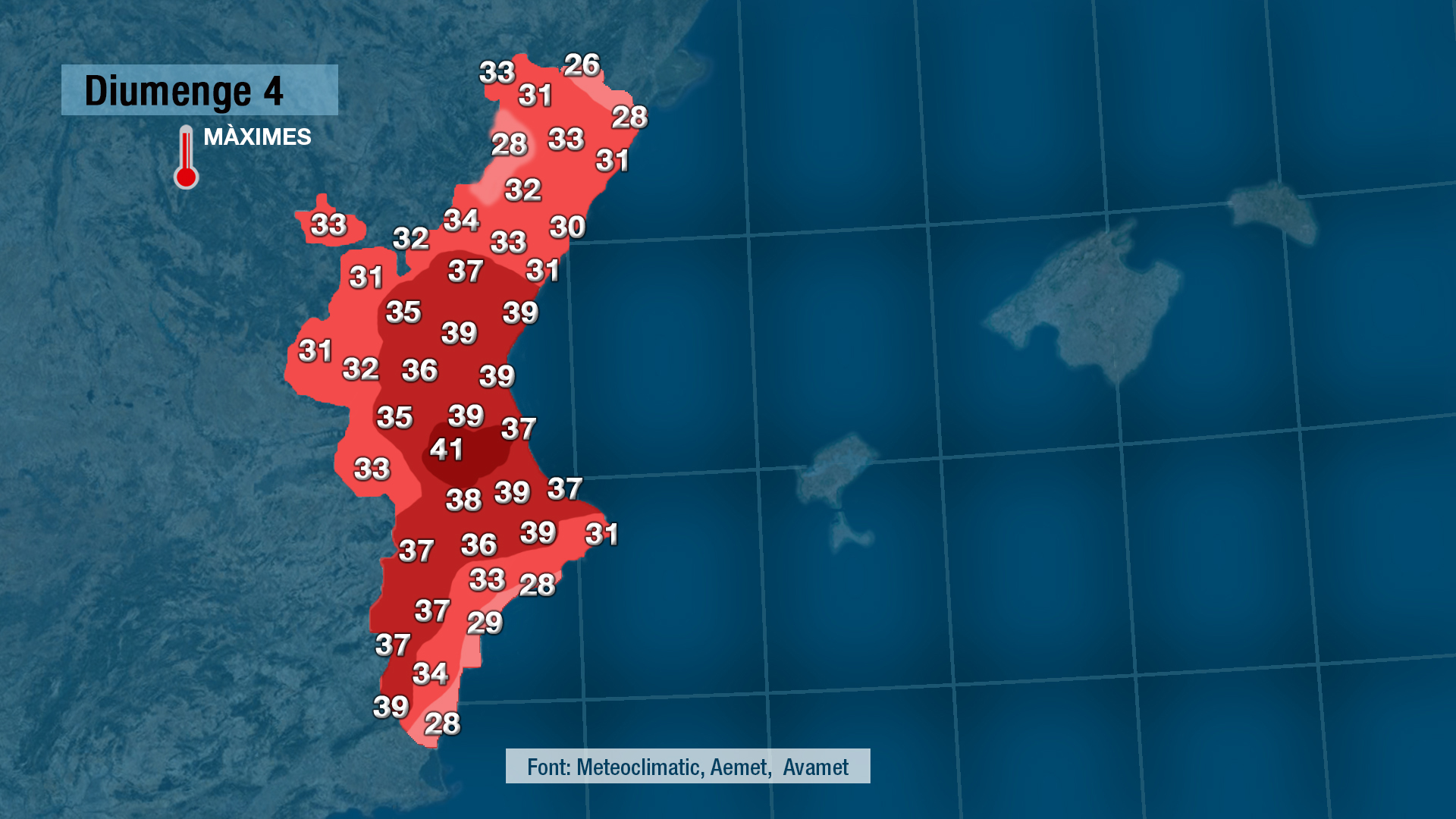 Les màximes d’ahir i les de dissabte són de moment les més altes registrades enguany. Al mapa podeu vore les d’ahir diumenge.