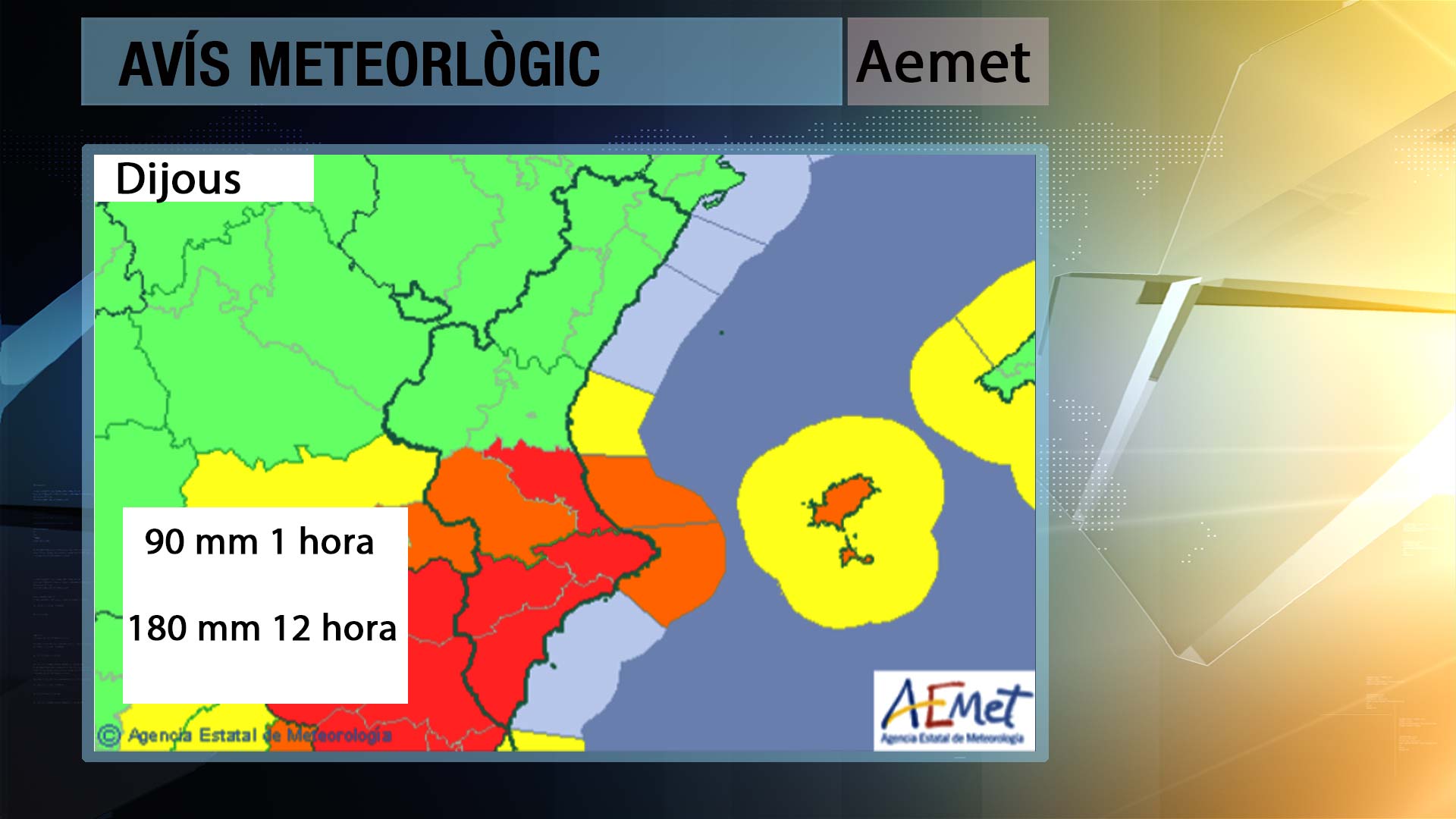 No podem baixar la guardia perquè encara que a la mitad nord del territori s’obriran clars, lluirà el sol i pujaran les temperatures , a la major part de la mitad sud de la Comunitat estem en alerta roja per pluges que poden superar els 90 litres en un hora i acumular més de 180 en 12 hores. No podem assegurar el que passarà però si avisar del que pot passar per tal de pendre les mesures oportunes i no haver de lamentar-ho després. De fet, durant la nit i matinada els registres superen els 150 litres a molts observartoris i a alguns han superat els 200.