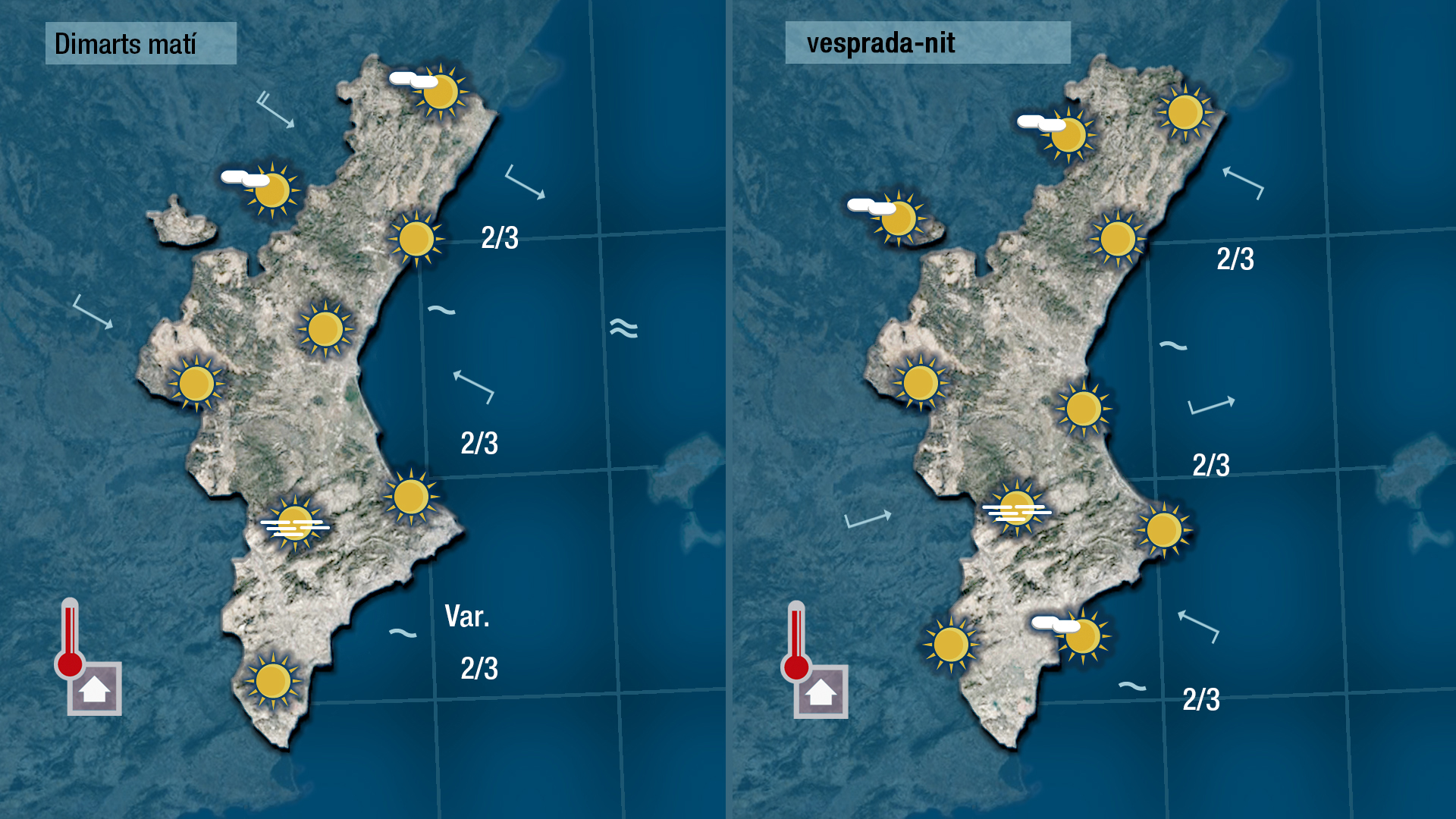 Demà dimarts només vorem alguns núvols baixos i alguna boirina en punts de la costa i a les comerques centrals. Ens espera un dia assolellat i amb temperatures un poc més altes
