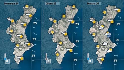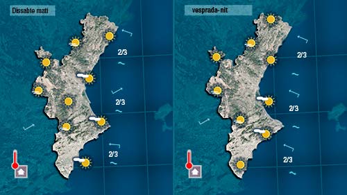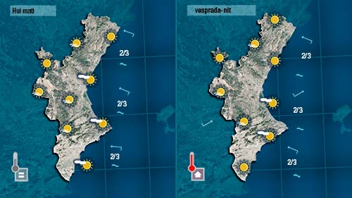L’oratge d’estos dies ja el podem qualificar de primaveral. De fet ahir em comentava un amic que ja havia vist aus que anuncien l’arribada de la nova estació…Els fruiters estan en plena floració, les abelles a ple rendiment i el cap de setmana a l’estabilitat dels últims dies hem d’afegir un ascens de les temperatures que començarem a notar hui i que portarà els termòmetres aprop del 25 graus demà.