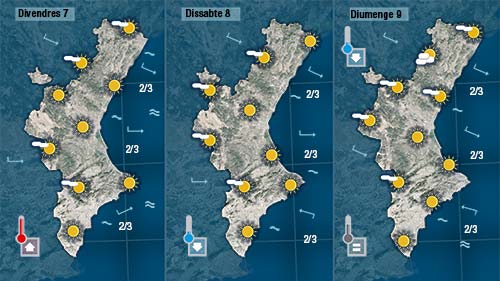 No tardarà en deixar-se sentir de nou el ponent divendres portant un nou ascens de les temperatures. Atenció als refredats amb estes pujades i baixades de temperatures i amb la diferència tèrmica entre la nit i el dia.