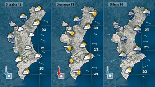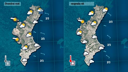Esta vesprada escamparà la nuvolositat desapareguent la possiilitat de pluja i fins i tot imposant-se el sol amoltes zones. No obstant, les temperatures baixaran un parell de graus.