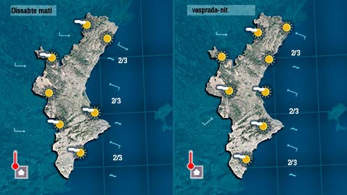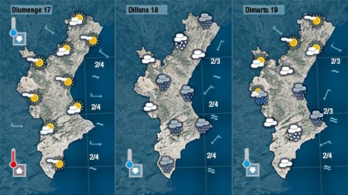 Tenim garantit el sol i la calor fins diumenge i també un descens de temperatures molt marcat dilluns (de més de 10 graus), però com quasi sempre passa en Falles els mapes del temps cada dia donen una cosa diferent.