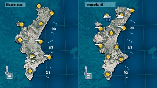 Diumenge la probabilitat de ruixats i tronades serà major però només afectaran l’interior i el nord de Castelló i pot ser de refiló el nord de València.
