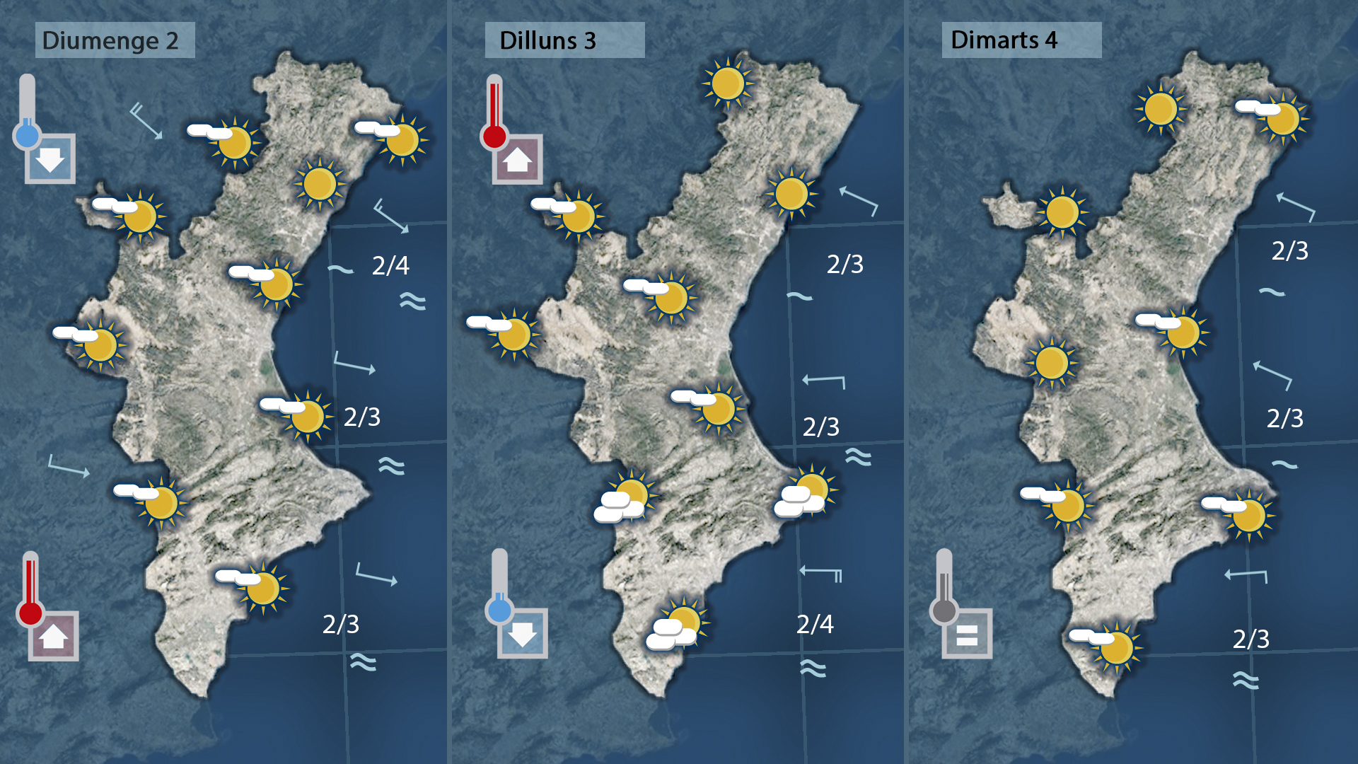El mestral podrà portar temperatures més baixes al nord diumenge però les farà pujar a la costa i al sud i la setmana que ve tot indica que l’anticicló farà girar el vent a xaloc i refrewsca rà l’ambient…però continuem sense vore i sense poder anunciar canvis de més entitat
