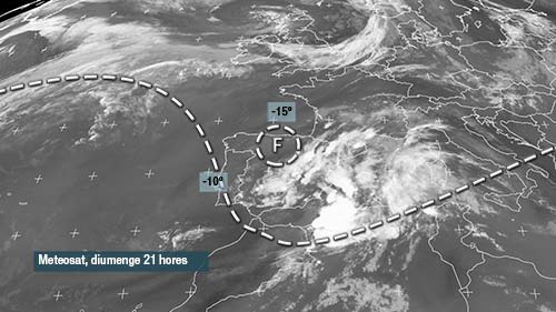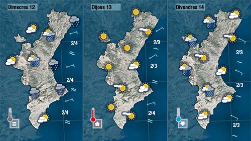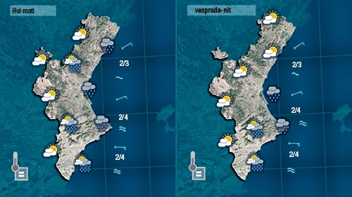 Dimecres també haurem d’estar molt atents a l’oratge perquè a dia de hui es mantenen les condicions per poder registrar-se pliges a bona part de la costa. Sembla que les precipitacions començarien descarregan al nord avançant posteriorment cap al sud.