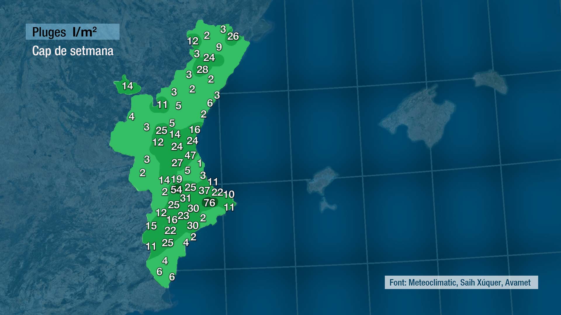 De fet, este és el resum de les precipitacions acumulades el cap de setmana