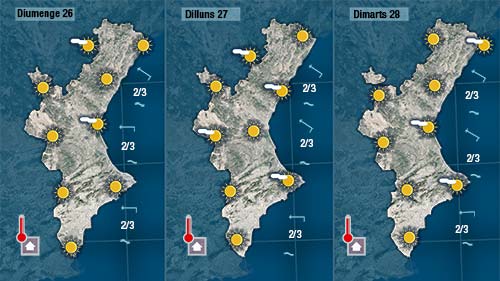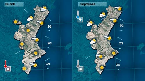 Les temperatures baixaran lleugerament al nord on durant el matí bufarà el cerç i de vesprada el cel quedarà més cobert (sense descartar que puga caure alguna gota)