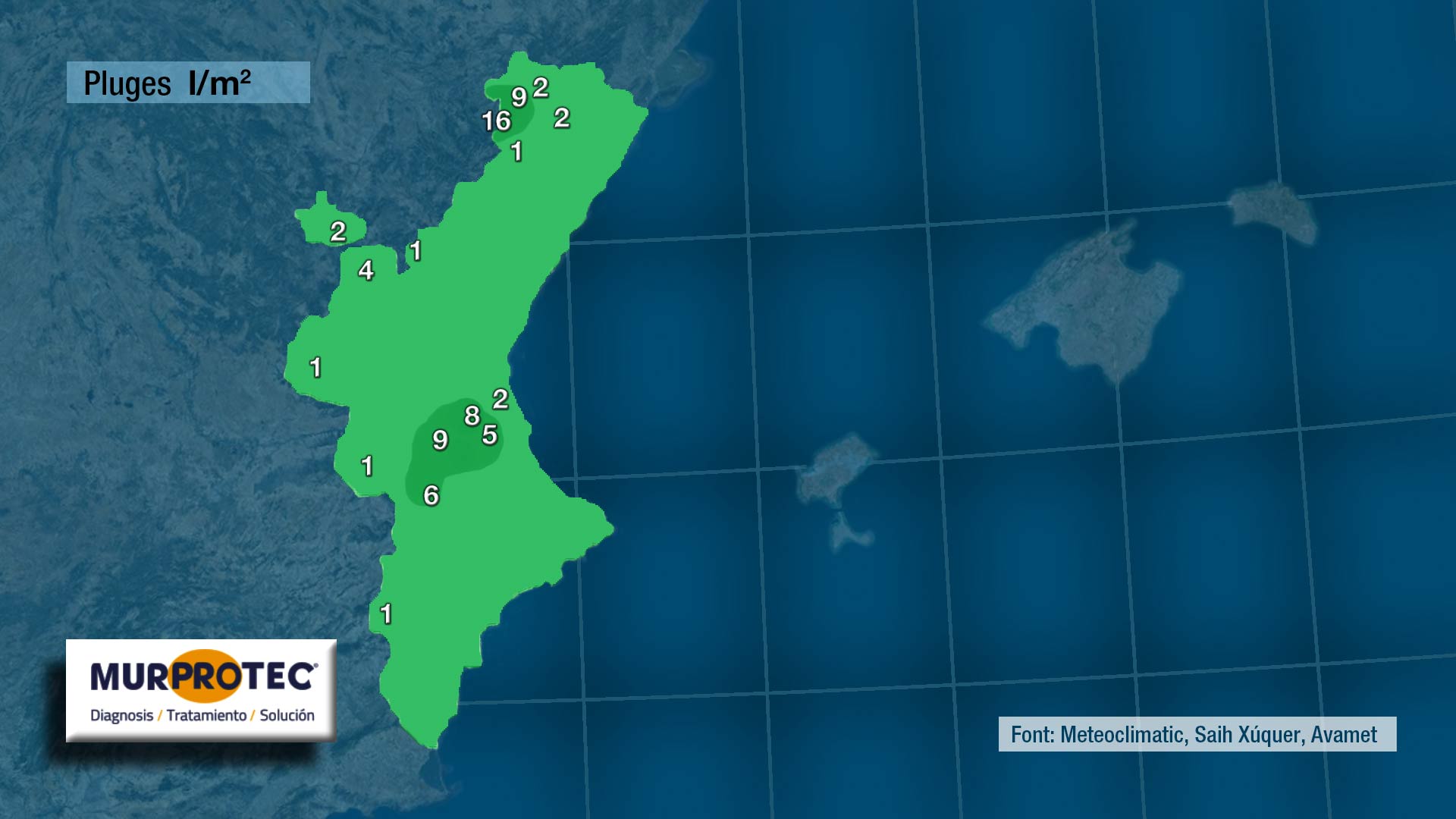 Les precipitacions afectaren ahir de forma molt irregular la Comunitat Valenciana. Entrarem per l’interior (on deixaren algun registre aseat al nord de Castelló) i en desplaçar-se en direcció sud-oest/nord-est apenes tocaren punts de l’interior i només deixaren quatre gotes a la costa.