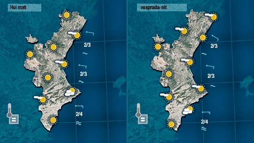 Hem tingut algun nuvolet a la costa en començar el dia, i esta vesprada també es voran alguns núvols a les zones de muntanya però en cap moment taparan el sol. Les temperature no patiran canvis o pujaran lleugerament.