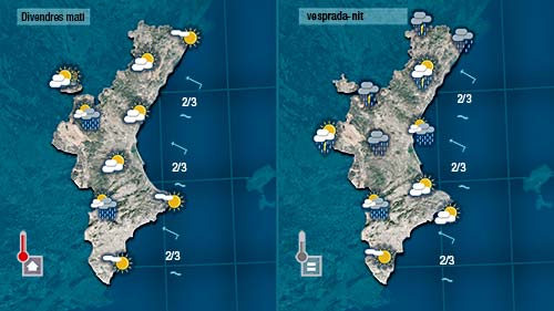 Demà divendres la inestabilitat es manifestarà des de primera hora del dia però no serà fins a la vesprada quan es registren pluges de certa entitat . Tempestes que localment descarregaran amb intensitat i en forma de tempesta. Caldrà esperar de nou a la nit o matinada perquè la nuvolositat escampe.