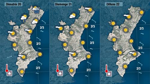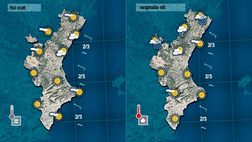 Com era d’esperar es desfan per la nit i comencem el dia amb sol però de nou molt pendents del núvols d’evolució que començaran a créixer a partir de migdia en punts de muntanya. A diferència dels últims dies pense que hui afectaran només el nord de la Comunitat.