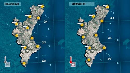 Demà dimecres encara notarem al ponent i al mestral fins a migdia, però a partir d’eixe moment acabarà bufant el vent de xaloc propiciant un lleuger descens de les temperatures a la costa. Al centre i per l’interior encara podran pujar un poc més les temperatures.