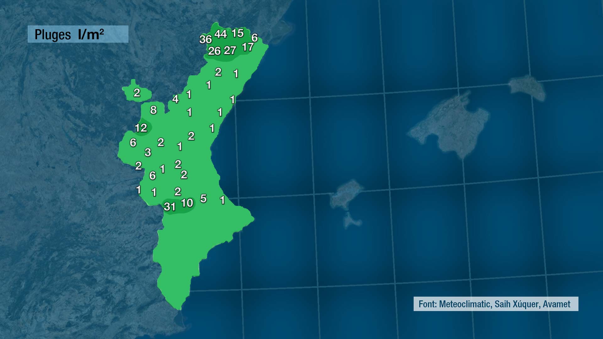 Hui també haurem d’estar atents a les tronades que puguen formar-se a partir de migdia a les muntanyes del nord i de l’interior perquè continuem amb una lleugera inestabilitat a les capes altes de l’atmosfera que contrasta amb la calor que s’acumula durant el dia en superfície.