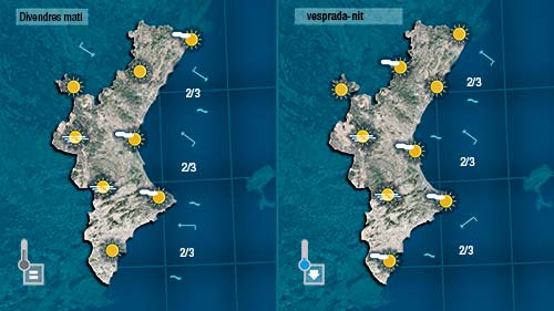 Demà divendres l’ambient serà un poc més fresc en bufar de mestral al nord en començar el dia, i de gregal al sud de vesprada aportant humitat des de la mar.
