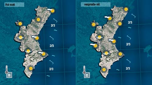 De momemt hui tindrem un oratge quasi idèntic al d’ahir. De bon de matí l’ambient serà fresc i boirós, i cap al migdia el sol ‘condirà’ un poc més deixant l’ambient suau.