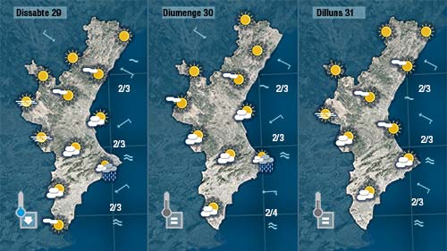 L’últim cap de setmana de 2018 tindrem més núvols a la mitad sud de la Comunitat on fins i tot podria escapar-se alguna gota. Les temperatures també quedaran un pèl més baixes.