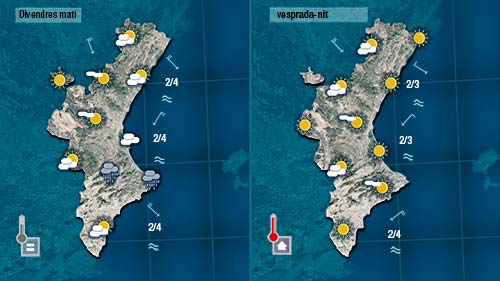 Demà divendres encara podrà ploure a primera hora en punts de la costa del sud però pense que a mig matí s’imposarà el sol per tot arreu i pujaran les temperatures.