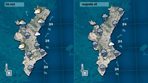 El dia ha començat amb intervals de núvols, poca pluja, i amb ullades de sol que aniran aportant energia perquè a partir de migdia torne a imposar-se la inestabilitat afavorint la formació de núvolades que acabaran deixant ruixats i tronadaes a bona part de la Comunitat.