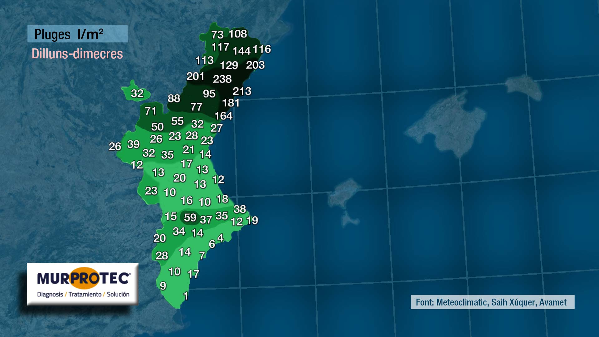 El balanç (provisional) de les precipitacions registrades des de dilluns queda com veieu al mapa