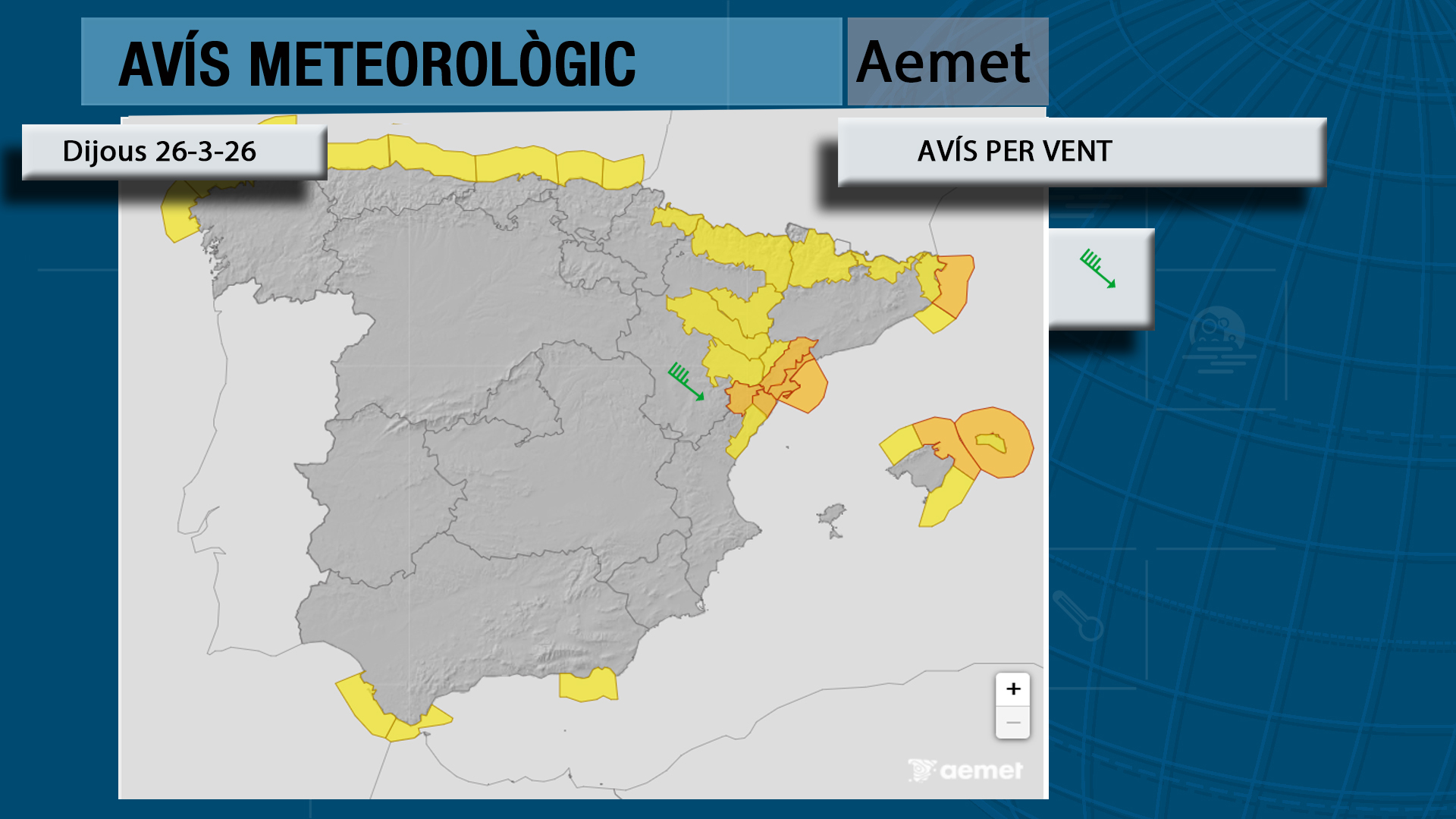 Una mestralada que es deixarà sentir sobretot al nord de la Comunitat on l’avís per vent serà taronja a les zones més septentrionals i interiors i groc conforme ens apropem a la costa