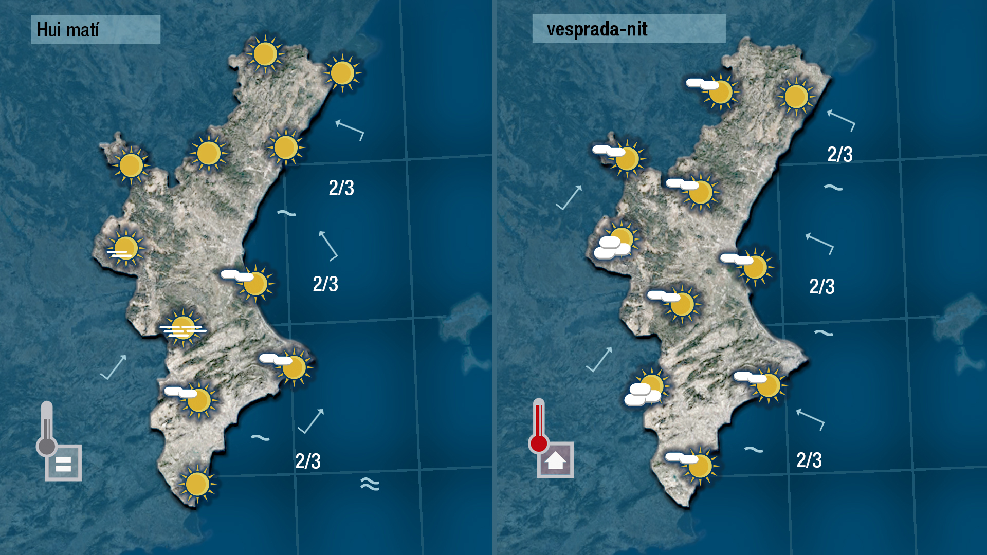 Paerò les altes pressions tenen les hores contades. Hui encara cal esperar un dia marcat per l’estabilitat i fins i tot per un ascens de les temperatres tot i que es voran boires a primera hora i alguns núvols alts durant la jornada.
