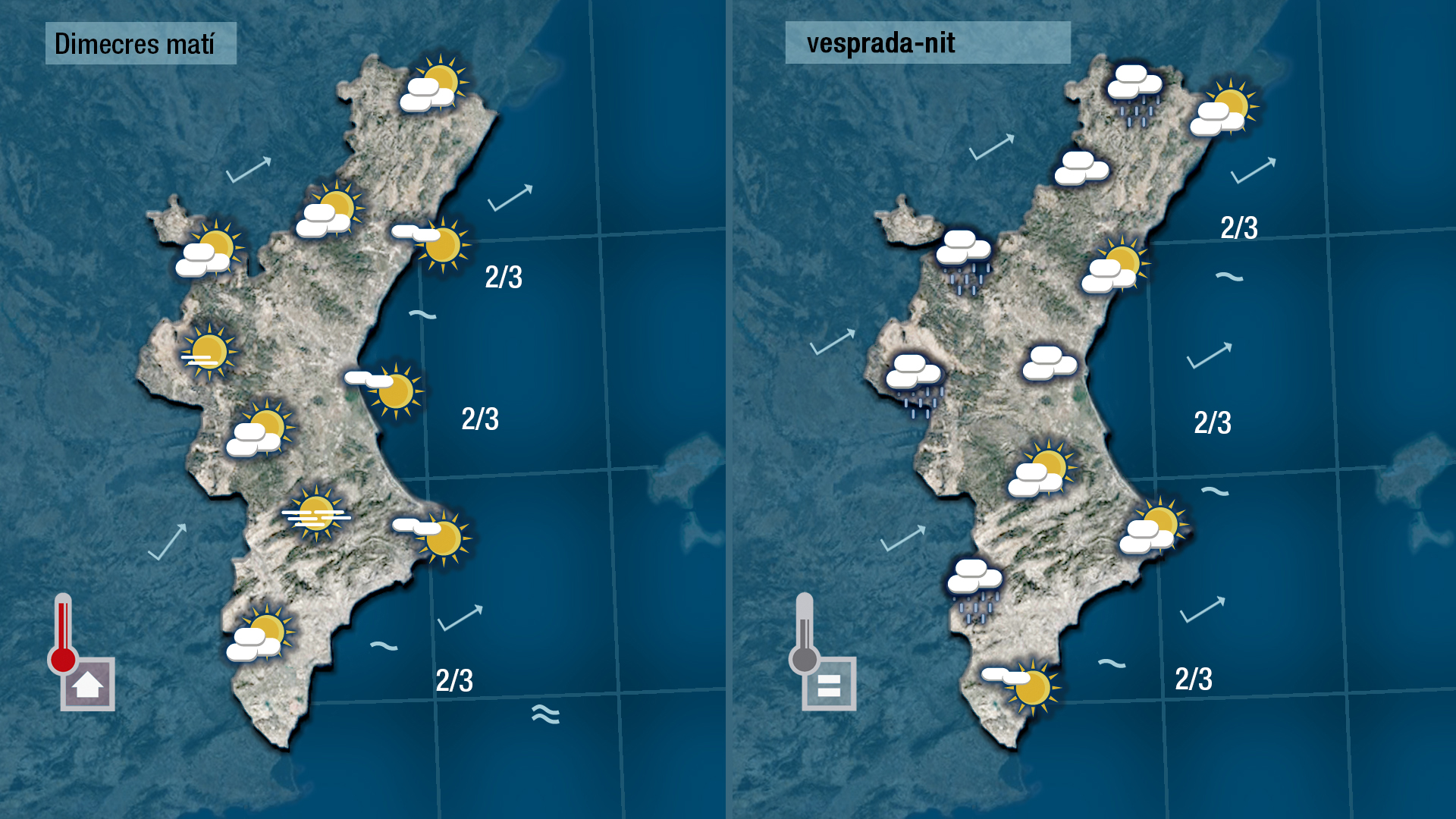 Demà dimecres el vent es deixarà sentir de llebeig anunciant l’aproximació d’un front que de vesprada deixaràel cel més ennuvolat i finsi tot podrà deixar ruixats dèbils.