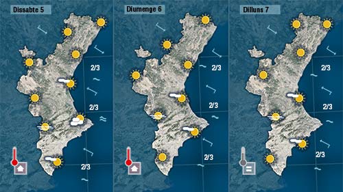 Així ha sigut l’oratge dels últims dies i així serà també el dels pròxims amb algun xicotet canvi que esperem demà divendres quan el vent d’origen marítim arribe amb més humitat a la franja costanera de la Comunitat Valenciana aportant més núvols i fins i tot deixant les primeres precipitacions de 2019 (pluges de caràcter dèbil, inapreciables a la major part ‘observatoris).