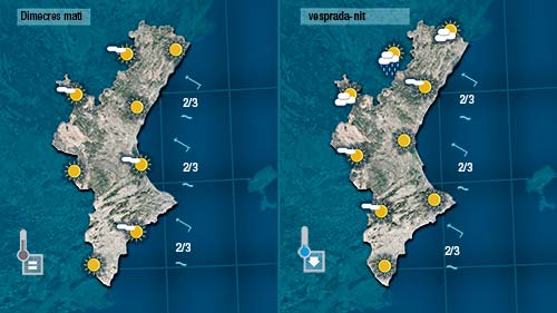 Demà dimecres també ens espera un dia ben calorós tot i que les temperatures podran baixar lleugerament. El descens es deixarà sentir més al nord on el cel estarà més cobert de vesprada i fins i tot podrà caure alguna gota.