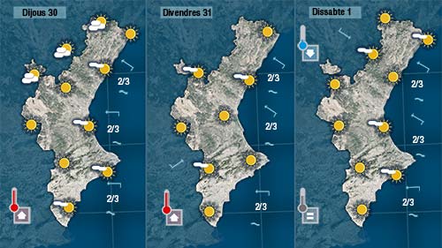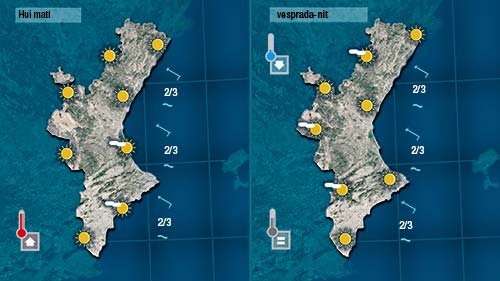 No cal esperar massa canvis després de la calor que patirem ahir. Hui apenes notarem canvis perquè l’oarge serà tan calorós com el d’ahir i les temperatures, grau amunt grau avall, tampoc seran molt diferents.