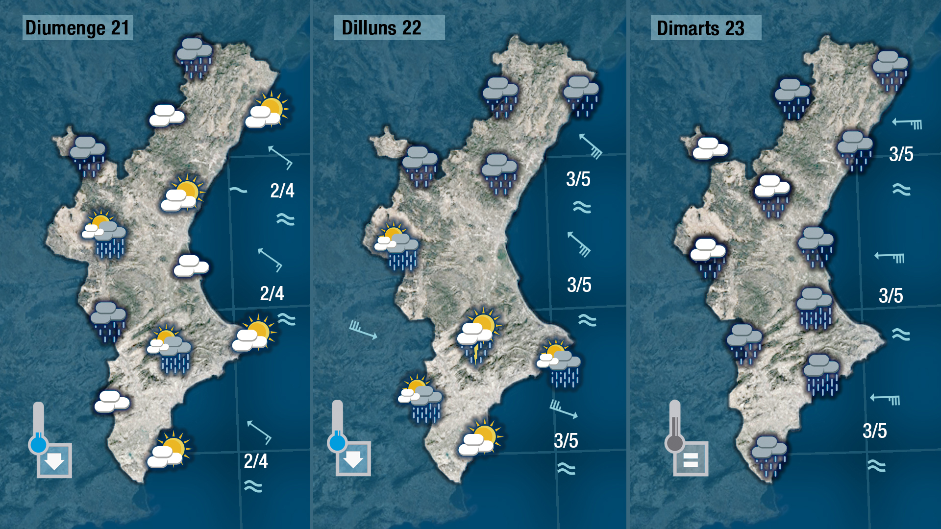 Dilluns serà un dia plujós, però de tota manera caldrà seguir de ben aprop on se situa finalment la borrasca perquè el llevant i les pluges siguen generals o només afceten la mitad nord de la Comunitat.