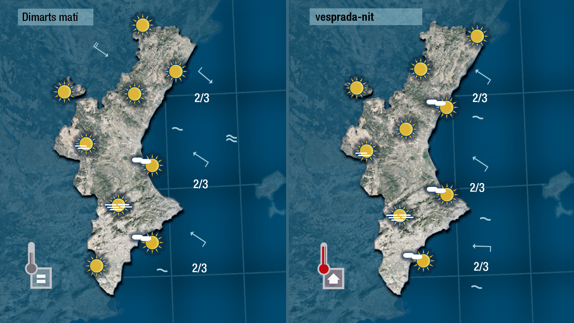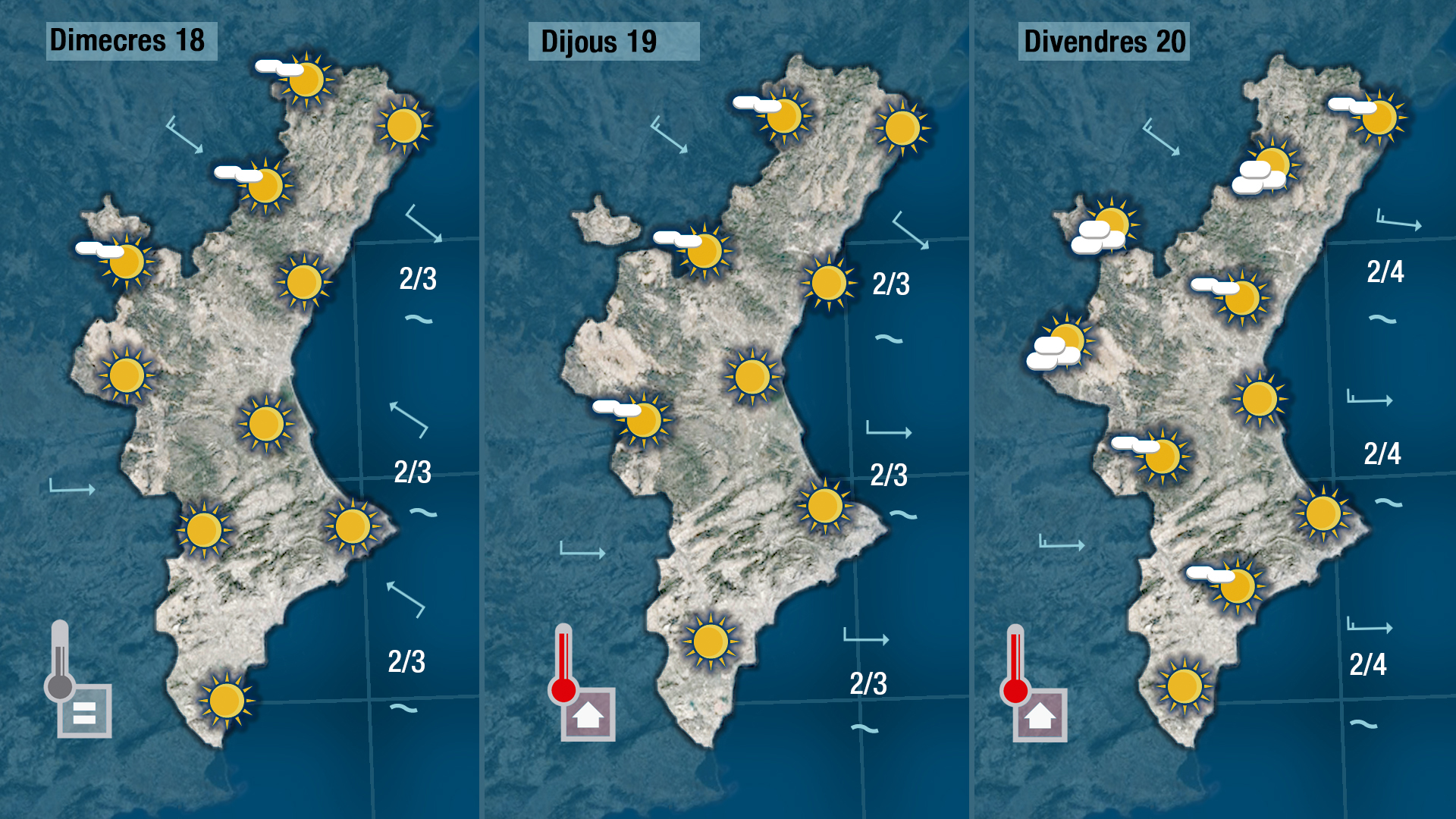 Dimecres tampoc serà un dia de massa emocions meteorològiques, i atenció perquè si van cumplint-se les previsions dijous i especialment divendres quan es reforce de nou el ponent encara podrien pujar les temperatures.