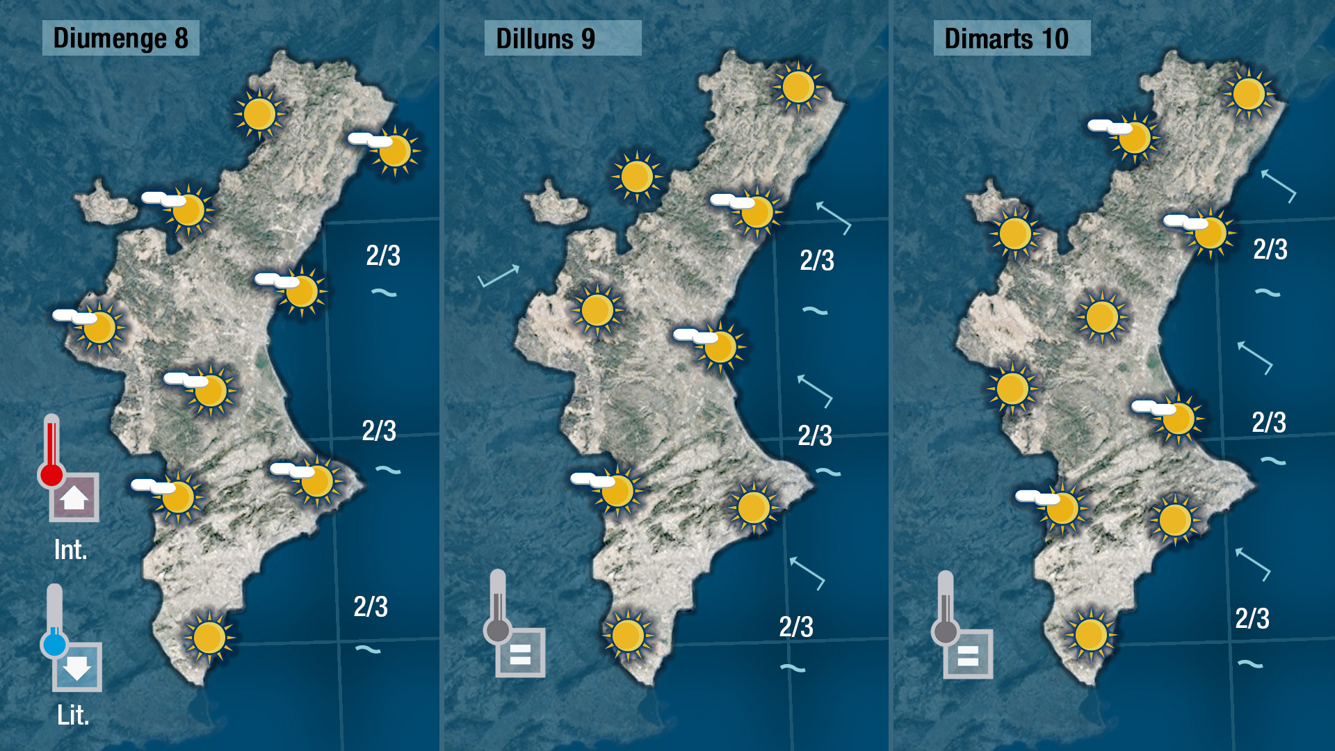 Diumenge el sol lluirà per fi per tot arreu. Les temperatures quedaran més altes per l’interior i baixaran lleugerament a la costa.