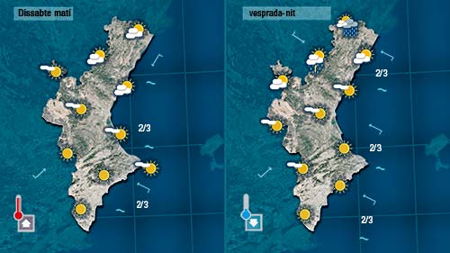 Durant el matí els núvols sense arribar a tapar el cel estaran presents a bona part de la Comunitat. De vesprada acabaran formant-se núvol d’evolució al nord que podran descarregar a les muntanyes de Castelló….un avís del que ens espera diumenge.
