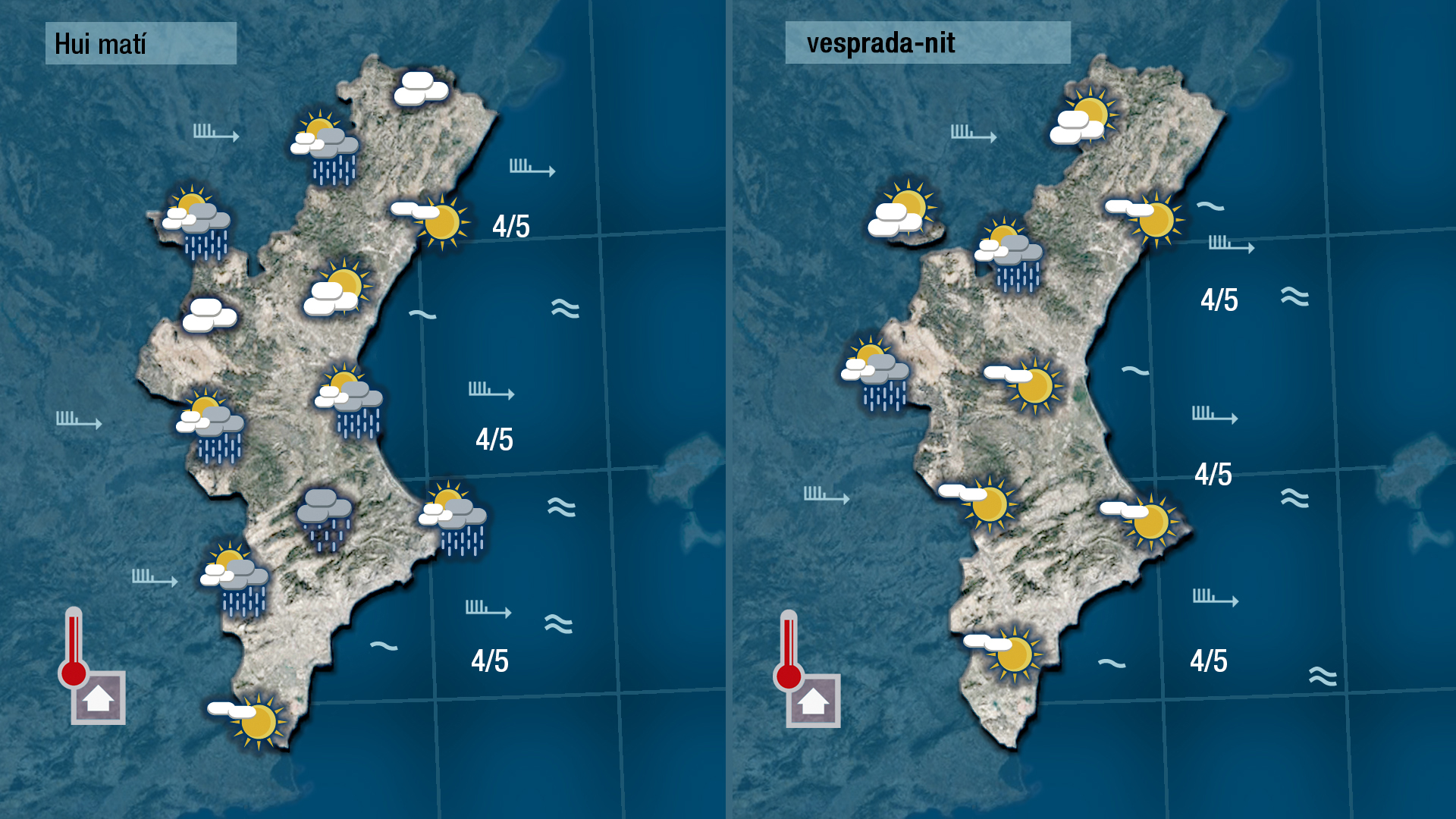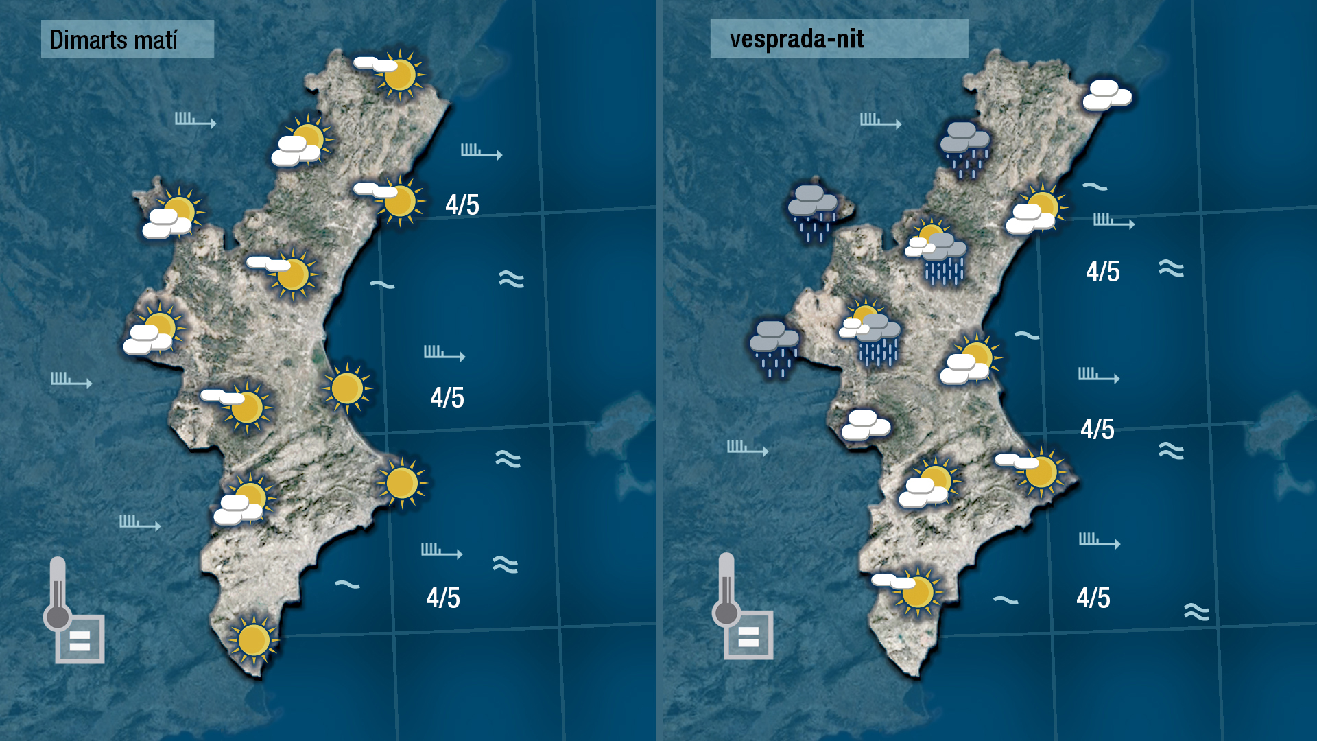 Demà dimarts farà sol durant bona part de la jornada, però a poqueta nit arribarà un altre front que de nou deixarà ruixats que perdran consistència en acostar-se a la costa. Les tempertaures no patiran canvis significatius.