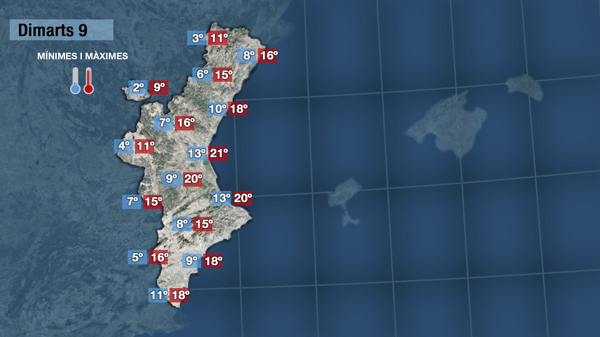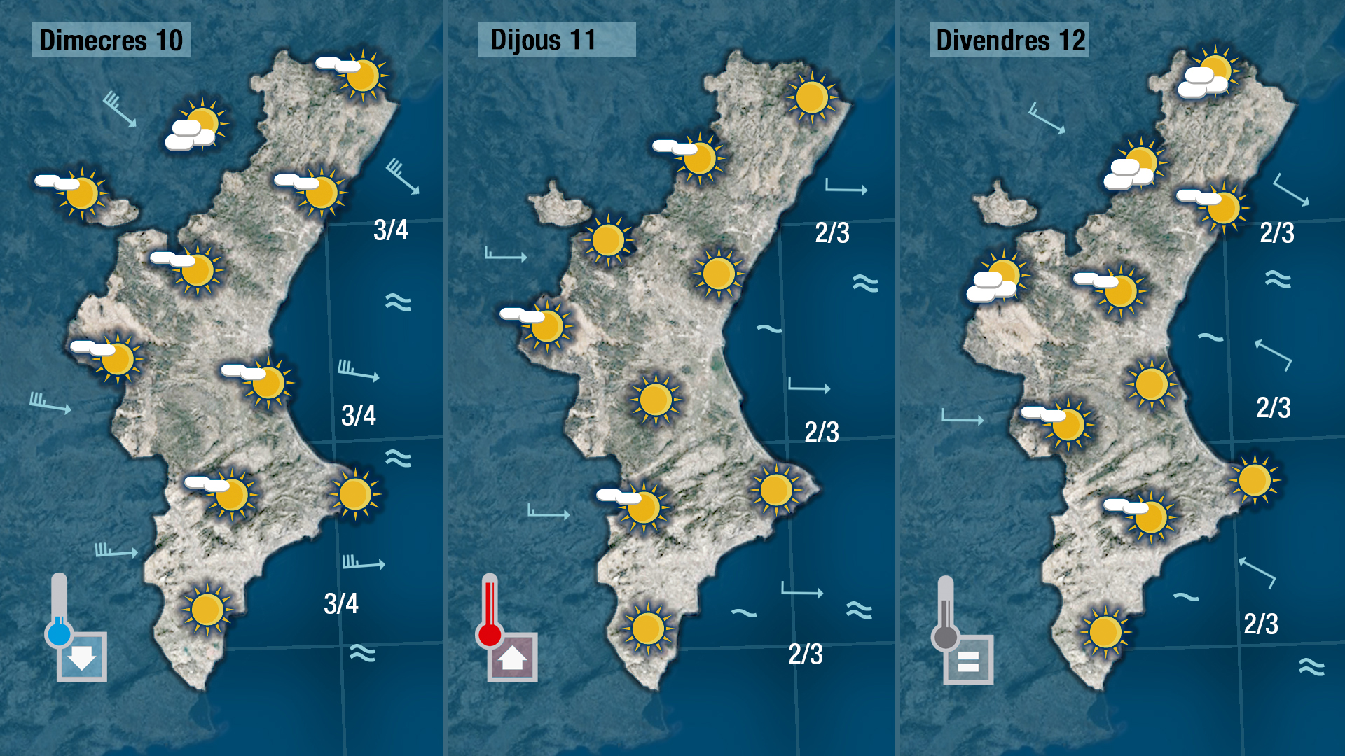 Dimecres, quan acabe de creuar-nos el front, bufarà de mesral i serà més fresc, però amb l’ajuda del sol a migdia les temperatures seran molt suaus.