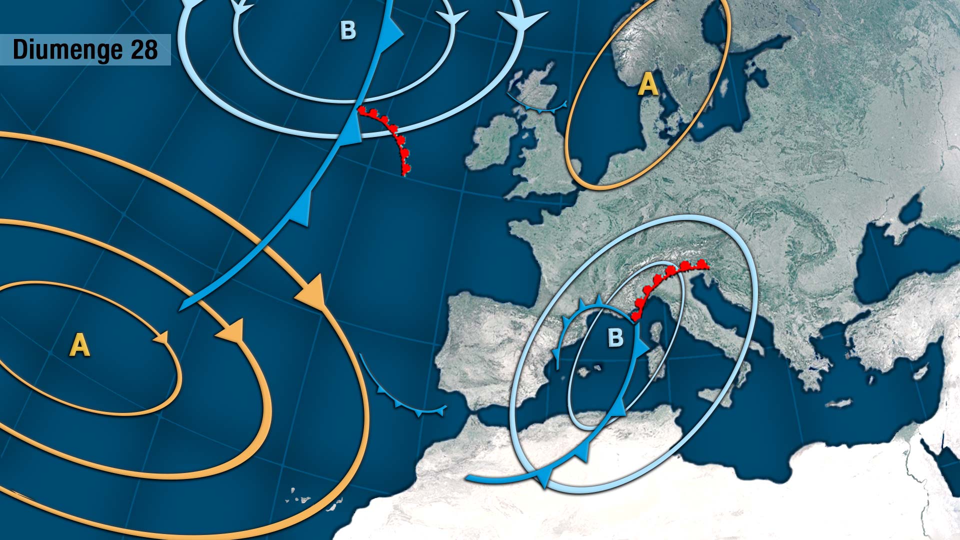 Dimarts tindrem l’entrada d’una nova pertorbació des del ponent de la Península que de vesprada començarà deixant pluges per l’interior però tancarem el dia amb pluges generals de caràcter dèbil.