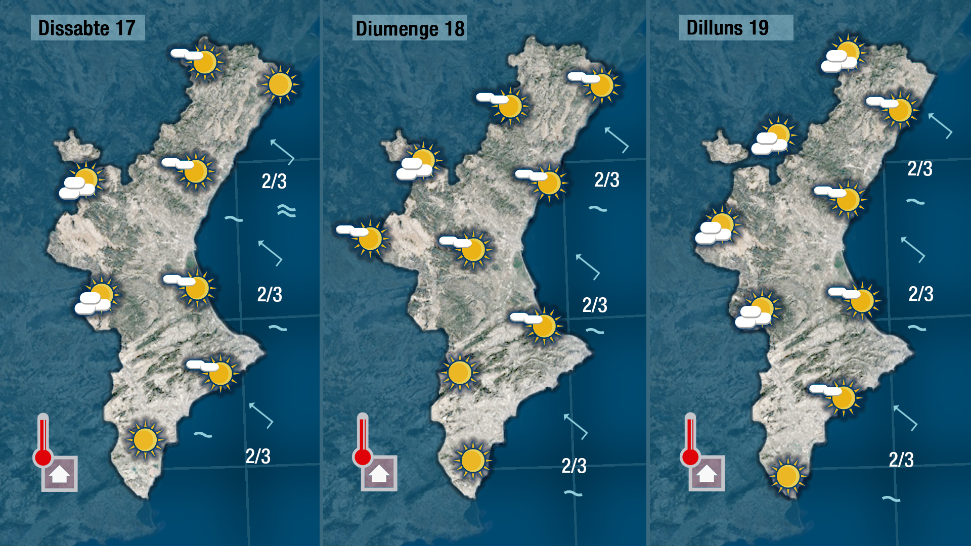 Tant el cap de setmana com l’inici de la setmana que ve l’oratge es mantindrà estable i les temperatures pujaran lleugerament sense arribar a fer calor. Les temperatures més altes arribaran als 25 o als 26 graus.